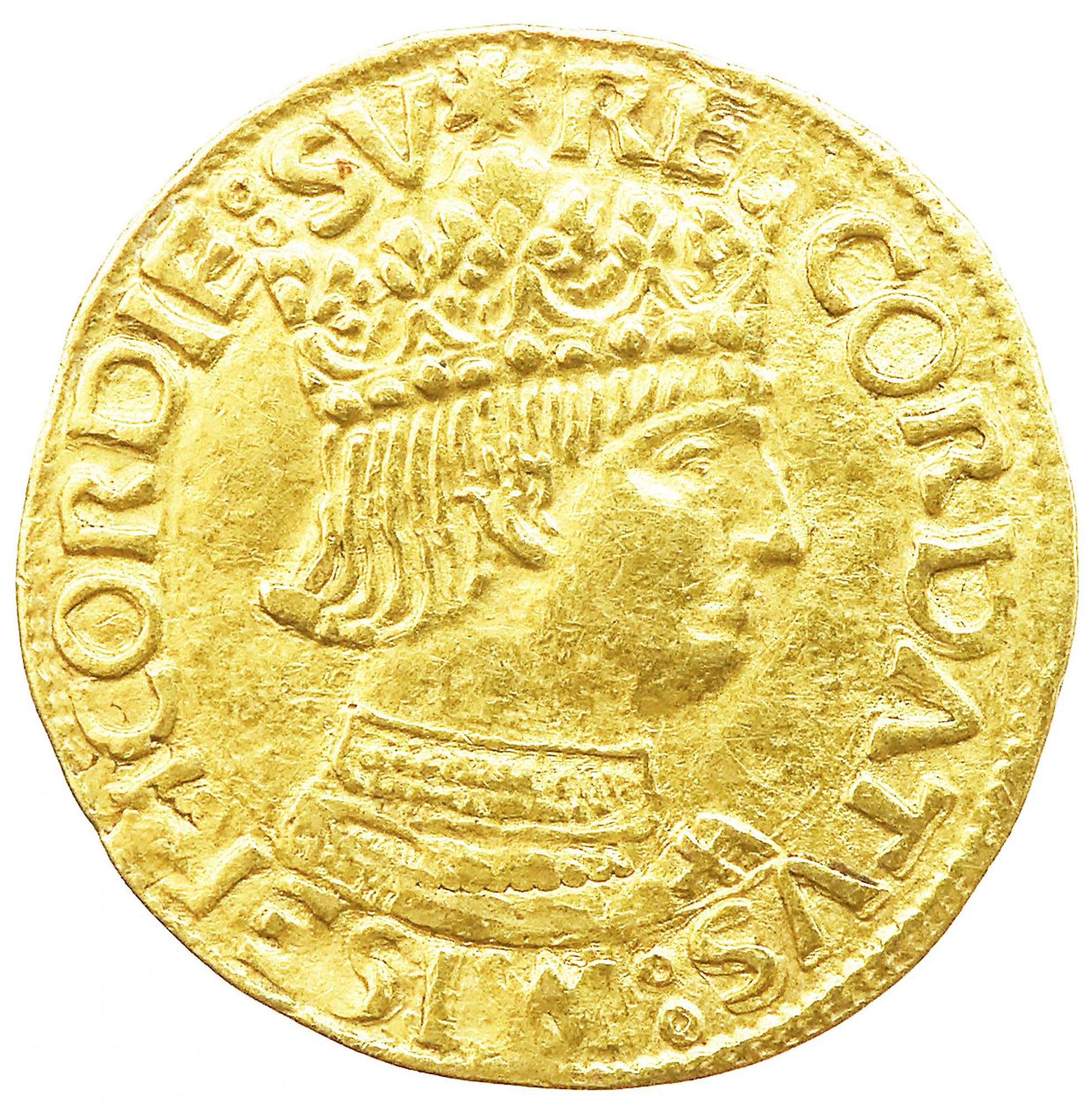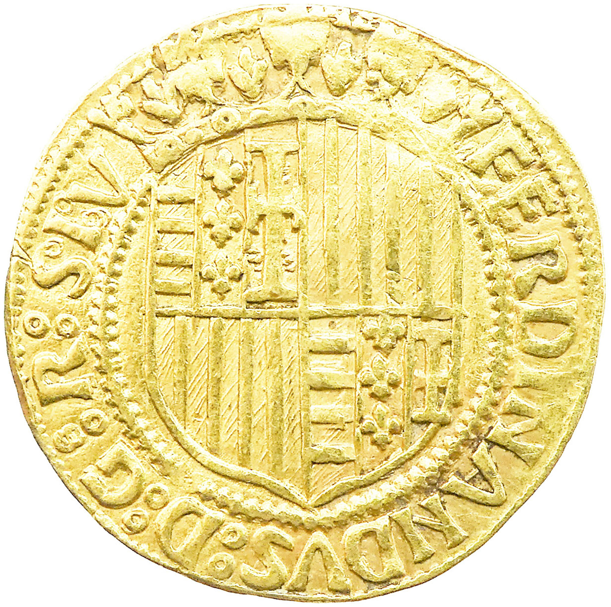 Napoli. Ferdinando I d’Aragona. (1458-94). Ducato. D: Stemma inquartato. R: Busto di Ferdinando volto a dr. Oro. mm 21,7. g 3,50. Conservazione: q.SPL. Rarità: R3. (1)MIR, 63. Pannuti-Riccio, 5.