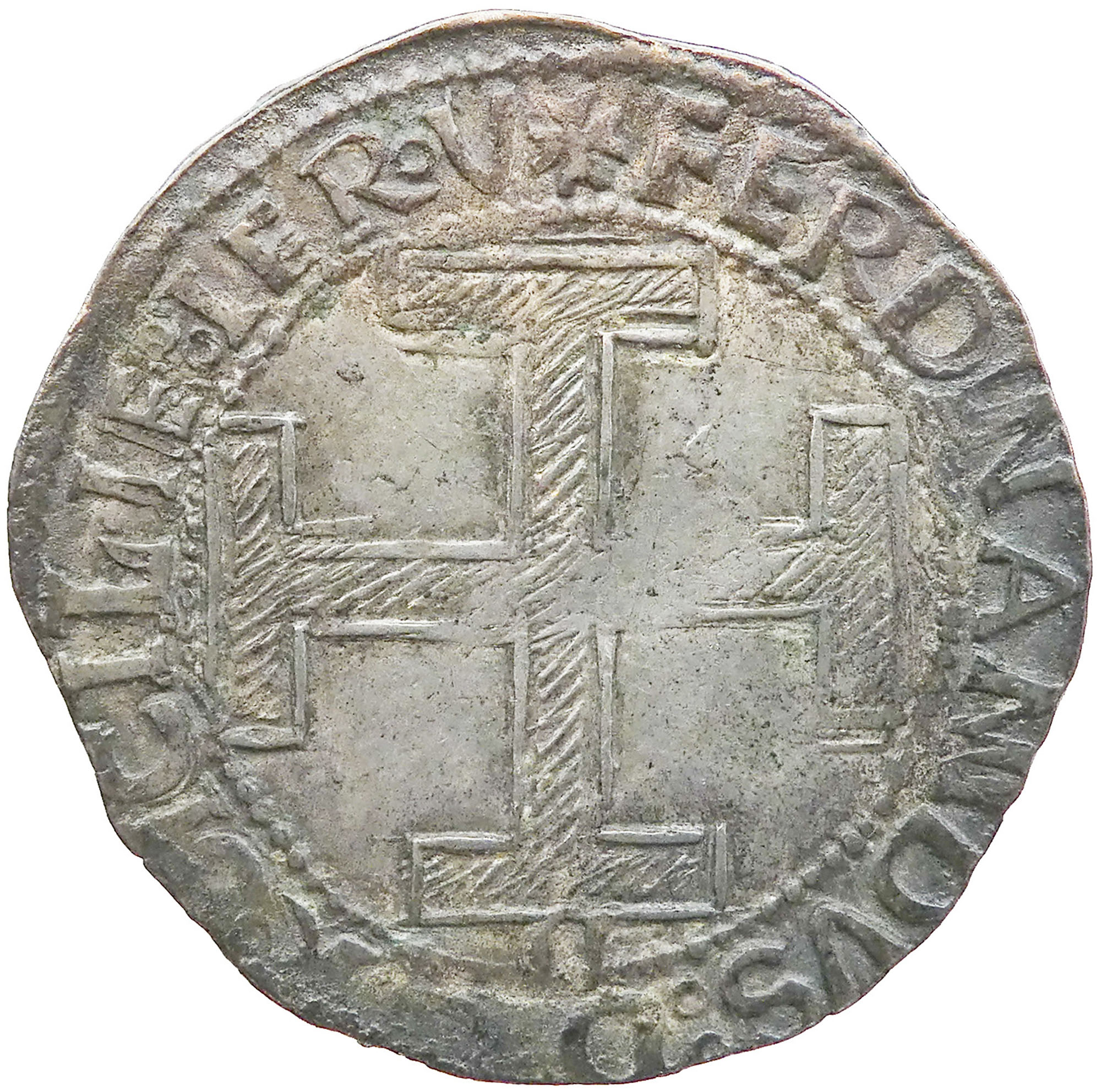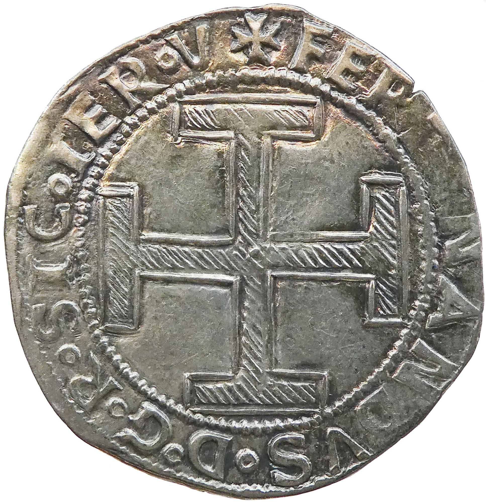 Lotto composto di 2 monete. 1) Napoli. Ferdinando I d'Aragona. (1458-1494). Coronato. D: Croce di Gerusalemme R: Busto di Ferdinando volto a dr. Argento. mm 26,5. g 3,90. Conservazione: BB. 2) Napoli. Ferdinando I d'Aragona. (1458-1494). Coronato D: Croce di Gerusalemme, sotto lettera C gotica. R: Busto di Ferdinando volto a dr., a sin. lettera C gotica. Argento. mm 26. g 4,01. Conservazione: BB. (2)MIR, 68-68/12. Pannuti-Riccio, 13-15/m.