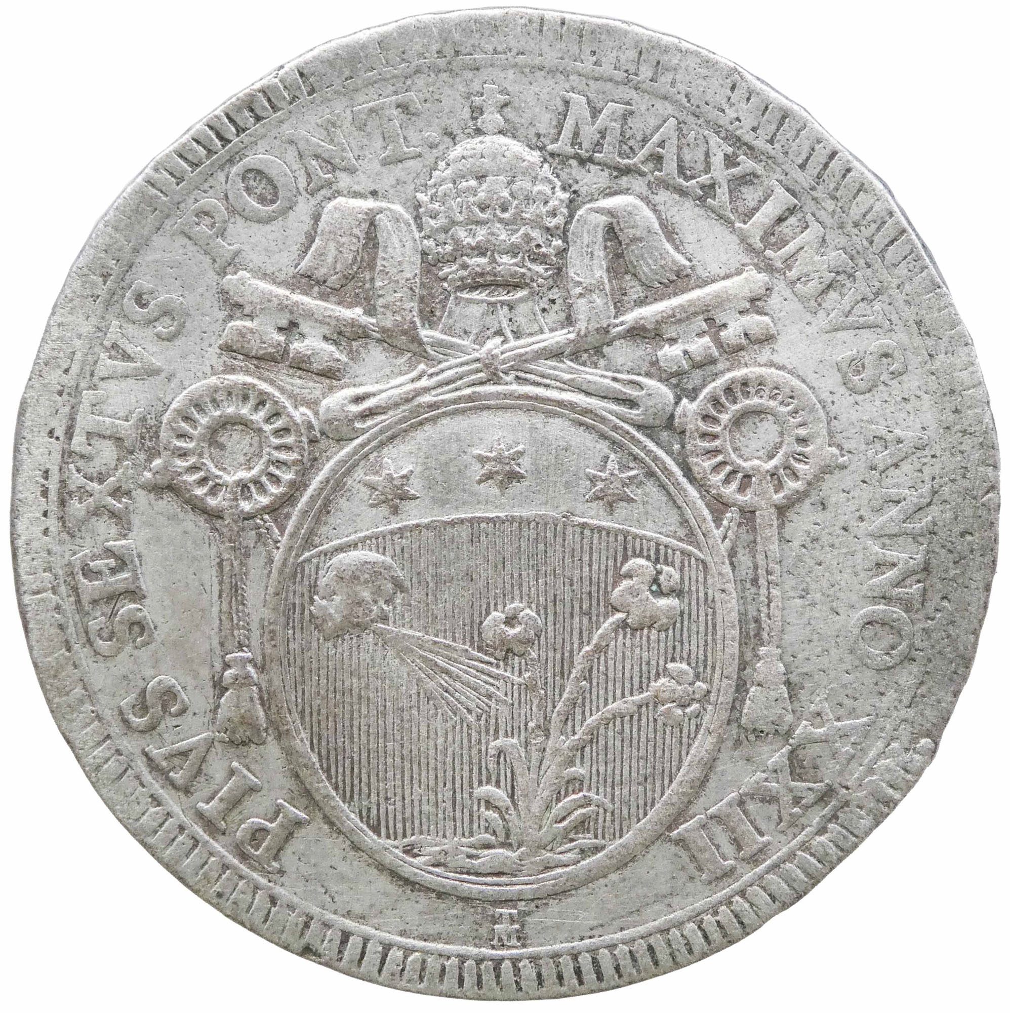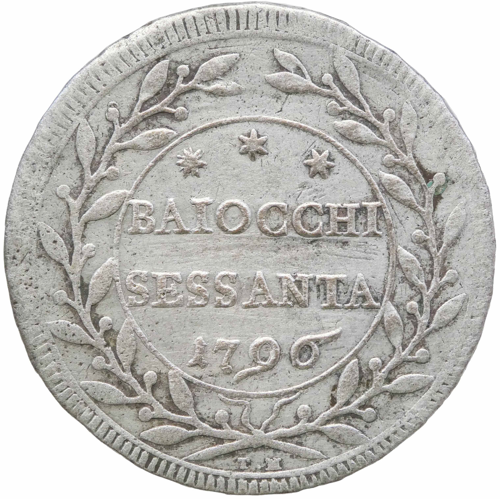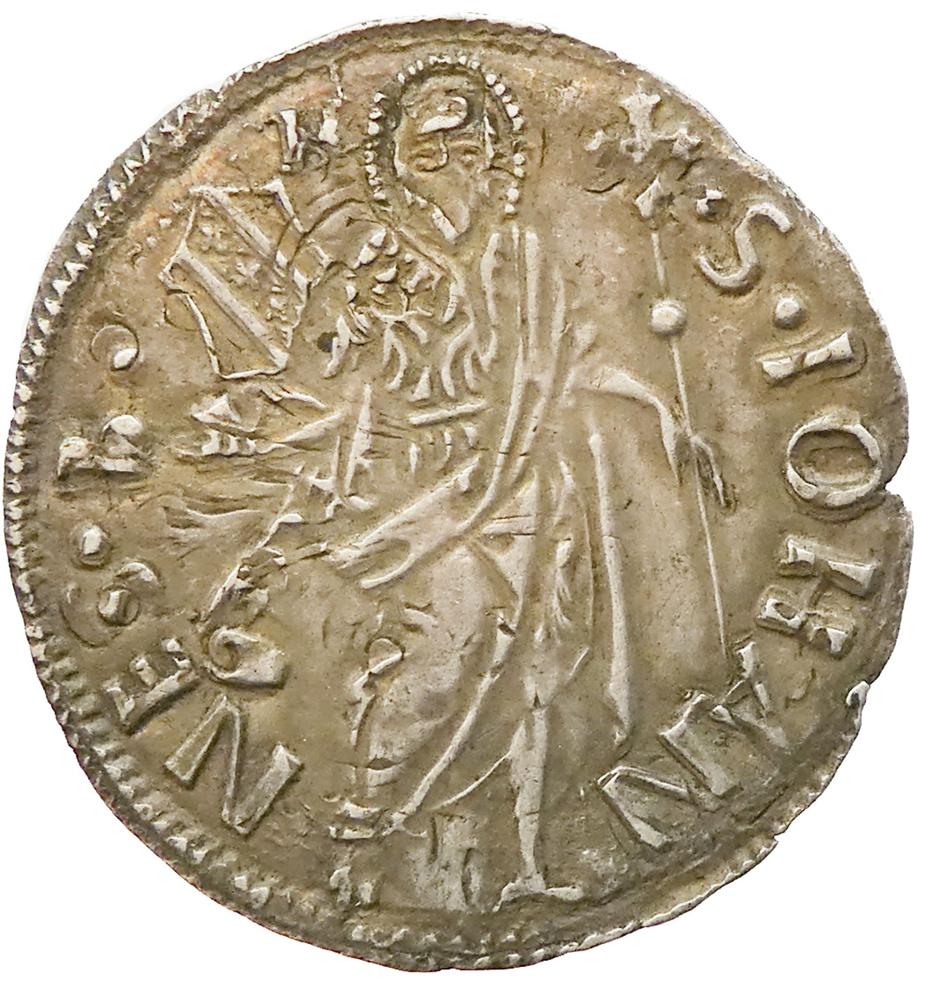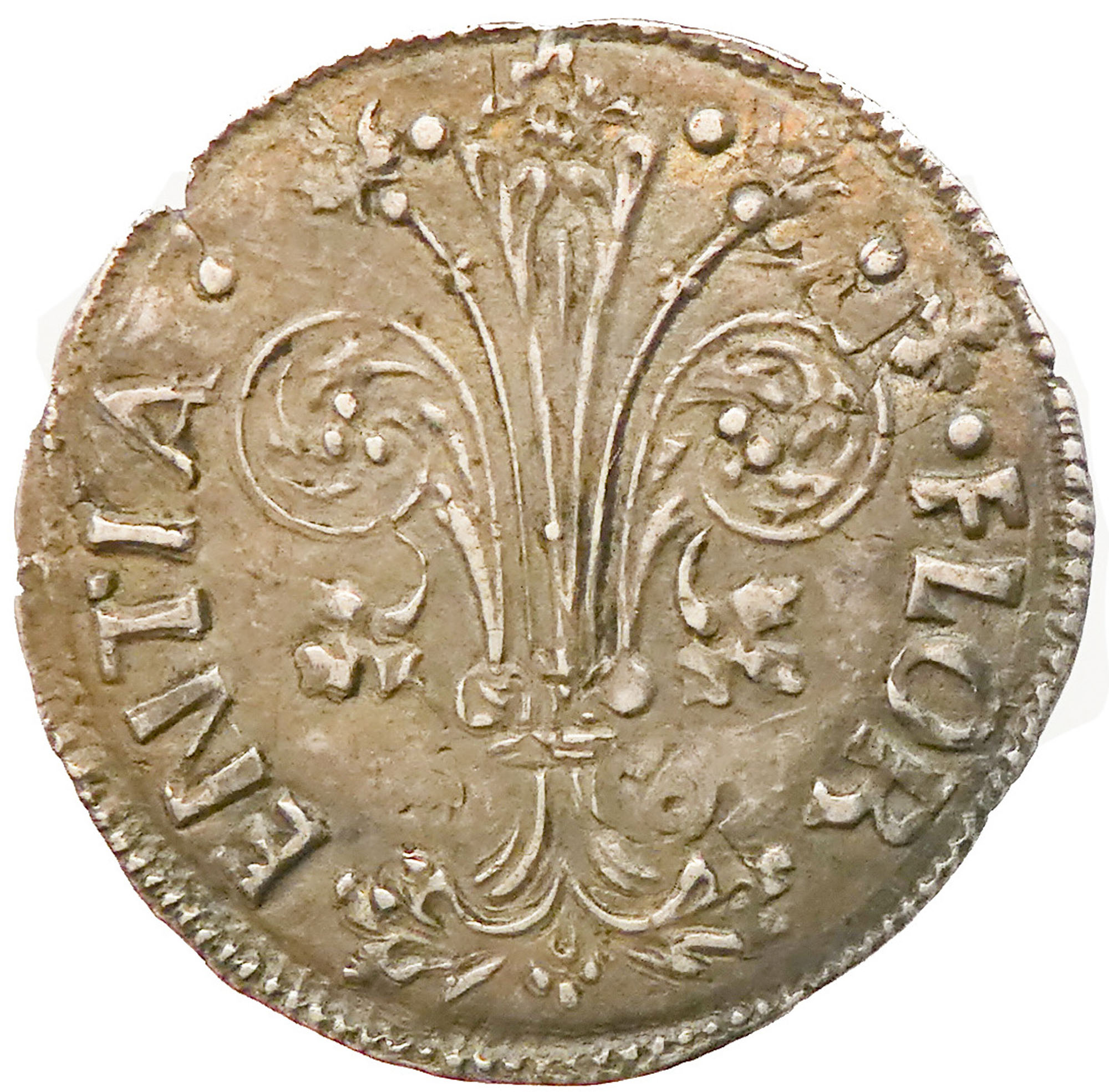 Lotto composto di 4 monete. 1) Firenze. Comune. (sec. XV). Grosso guelfo. D: Giglio. R: San Giovanni. Argento. mm 25. g 2,25. Conservazione: BB. 2) Firenze. Ferdinando II dei Medici. (1621-1670). Giulio 1641. D: Stemma mediceo. R: L'Annunciazione. Argento. mm 25. g 2,71. Conservazione: B. Rarità: R2 (tosato). 3) Roma. Alessandro VI. (1492-1503). Grosso. D: Stemma papale. R: I Santi Pietro e Paolo. Argento. mm 24,5. g 2,62. Conservazione: q. MB (tosato). 4) Roma. Pio VI. (1775-1799). 60 Baiocchi 1796. D: Stemma papale. R: BAIOCCHI // SESSANTA // 1796 entro corona di lauro. Argento. mm 37,5. g 21,13. Conservazione: q. BB. (4)