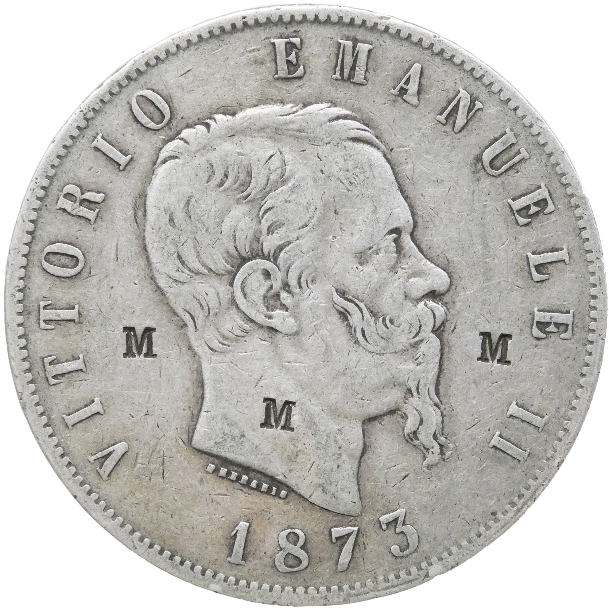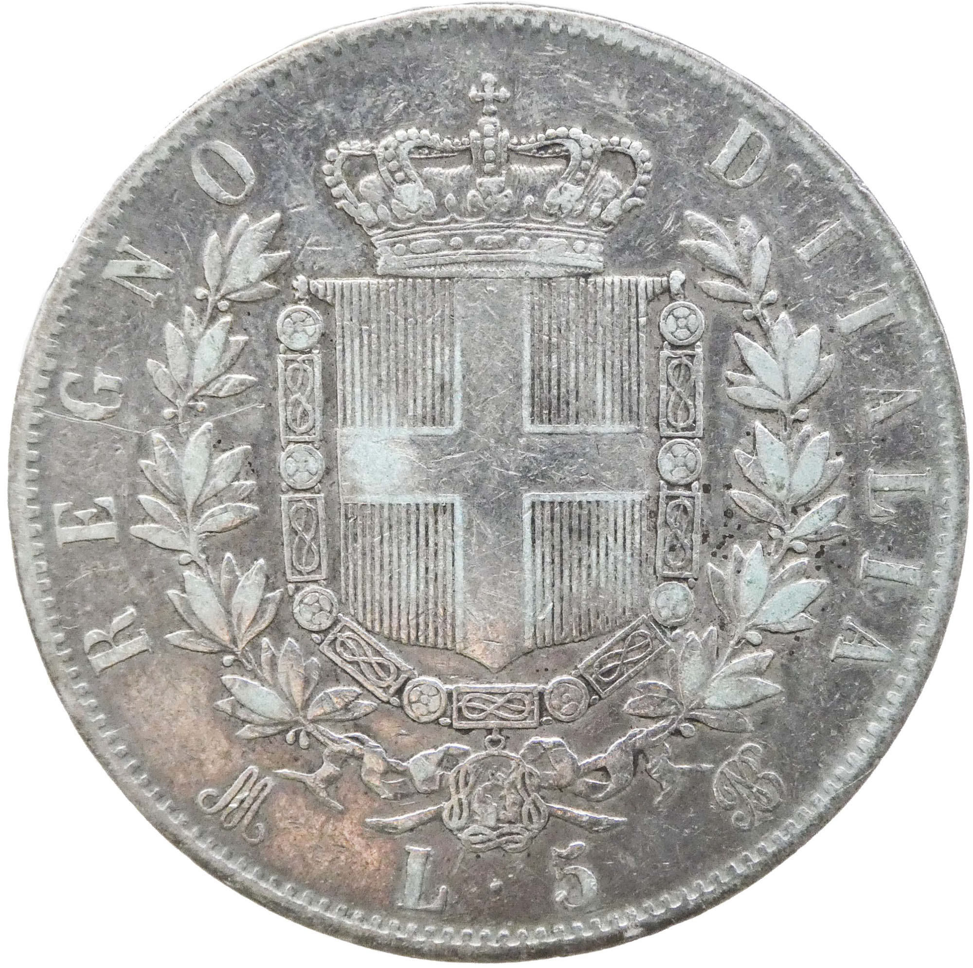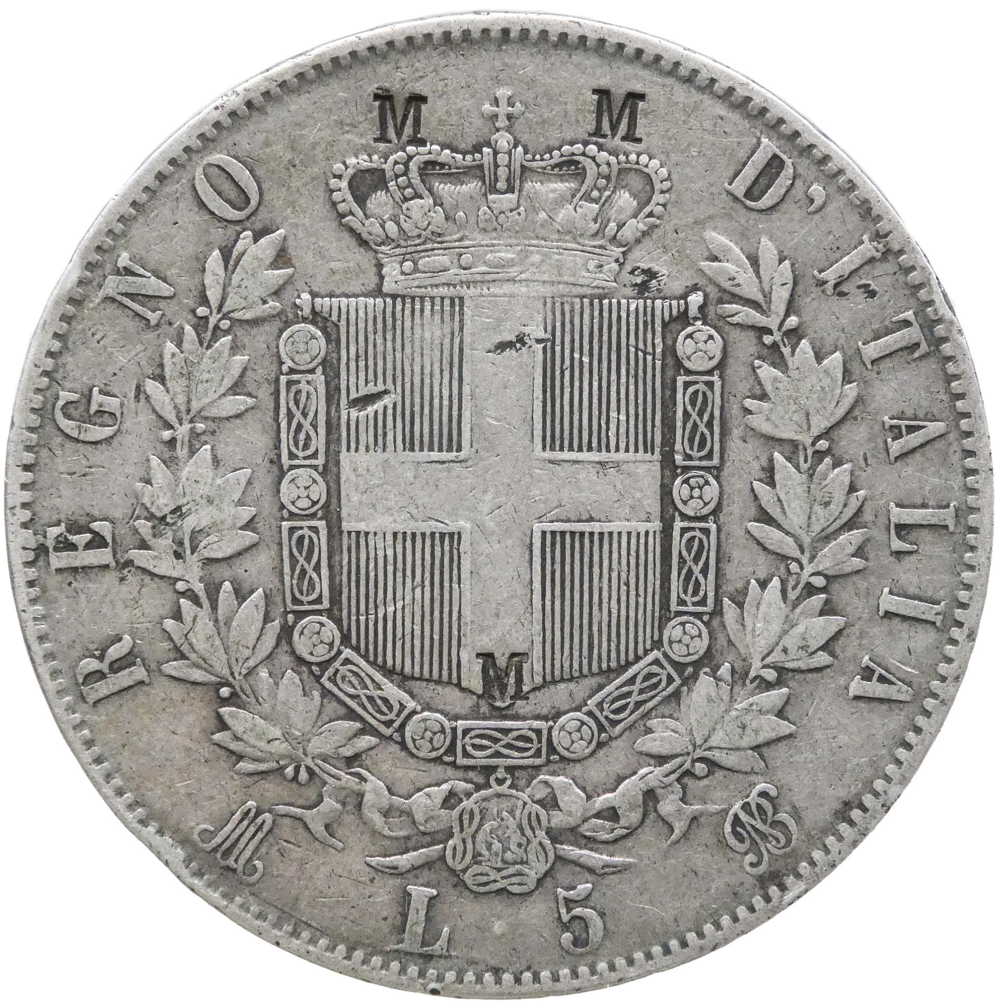 Lotto composto di 3 monete. 1) Regno d'Italia. Vittorio Emanuele II. (1861-1878). Lire 5 1873 Milano. D: Testa volta a dr. R: Stemma sabaudo. Interessanti e curiose punzonature con lettera "M" sia al D/ che al R/. Argento. mm 37. g 25. Conservazione: q. BB. 2) Regno d'Italia. Vittorio Emanuele II. (1861-1878). Lire 5 1873 Milano. D: Testa volta a dr. R: Stemma sabaudo. Argento. mm 37. g 25. Conservazione: q.BB. 3) Regno d'Italia. Napoleone I. (1805-1814). Lire 5 1812 Milano. D: Testa volta a dr. R: Stemma. Argento. mm 37. g 25. Conservazione: q. BB. (3)Pagani 496-30/a.