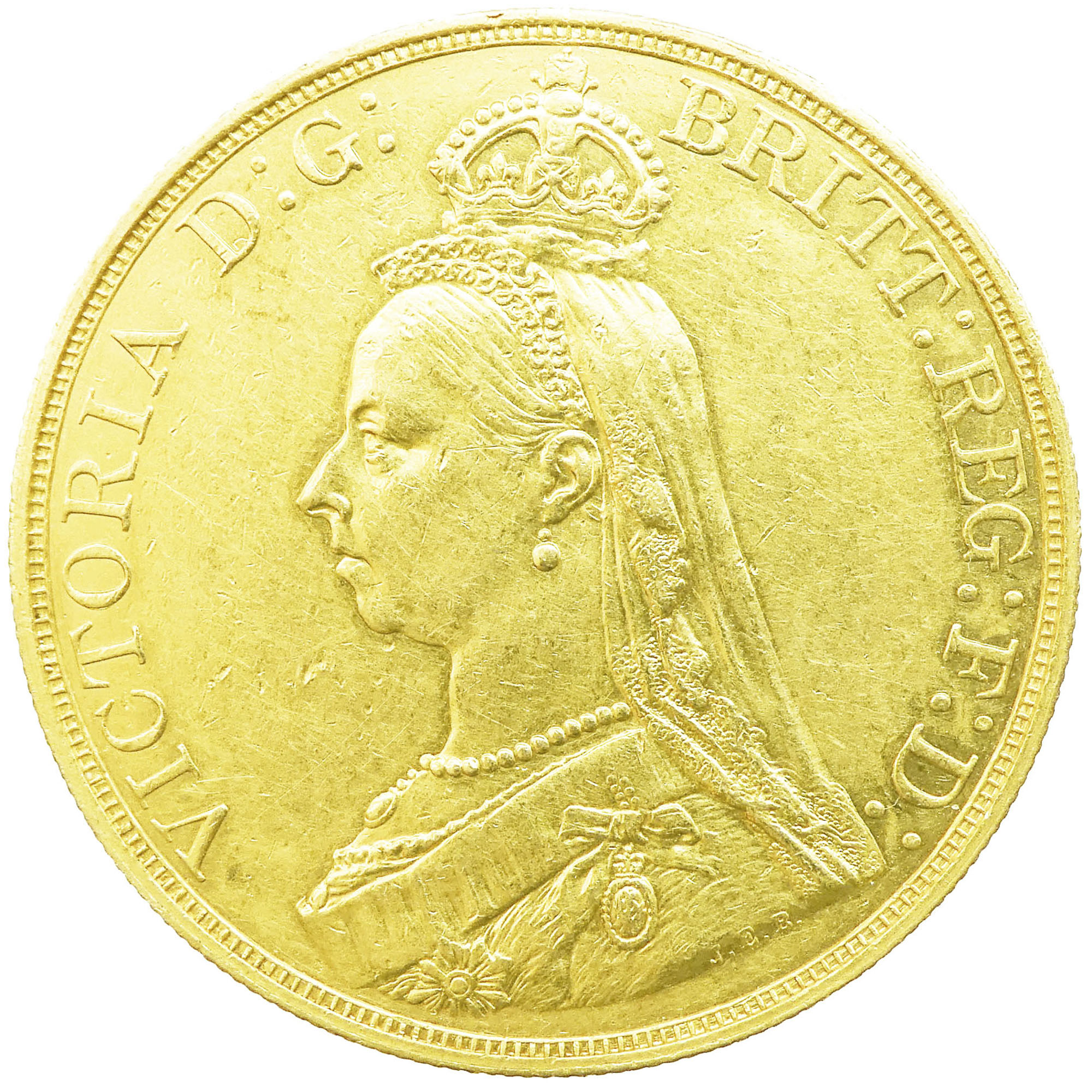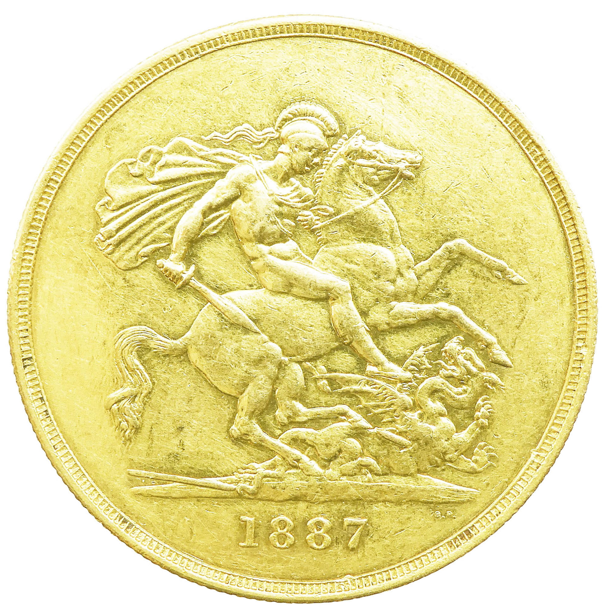 Inghilterra. Regina Vittoria. (1876-1901). 5 Sterline oro 1887. D: Testa volta a sin. R: San Giorgio che trafigge il drago. Oro. mm 36. g 39,85. Conservazione: BB. (1)Friedberg, 390.