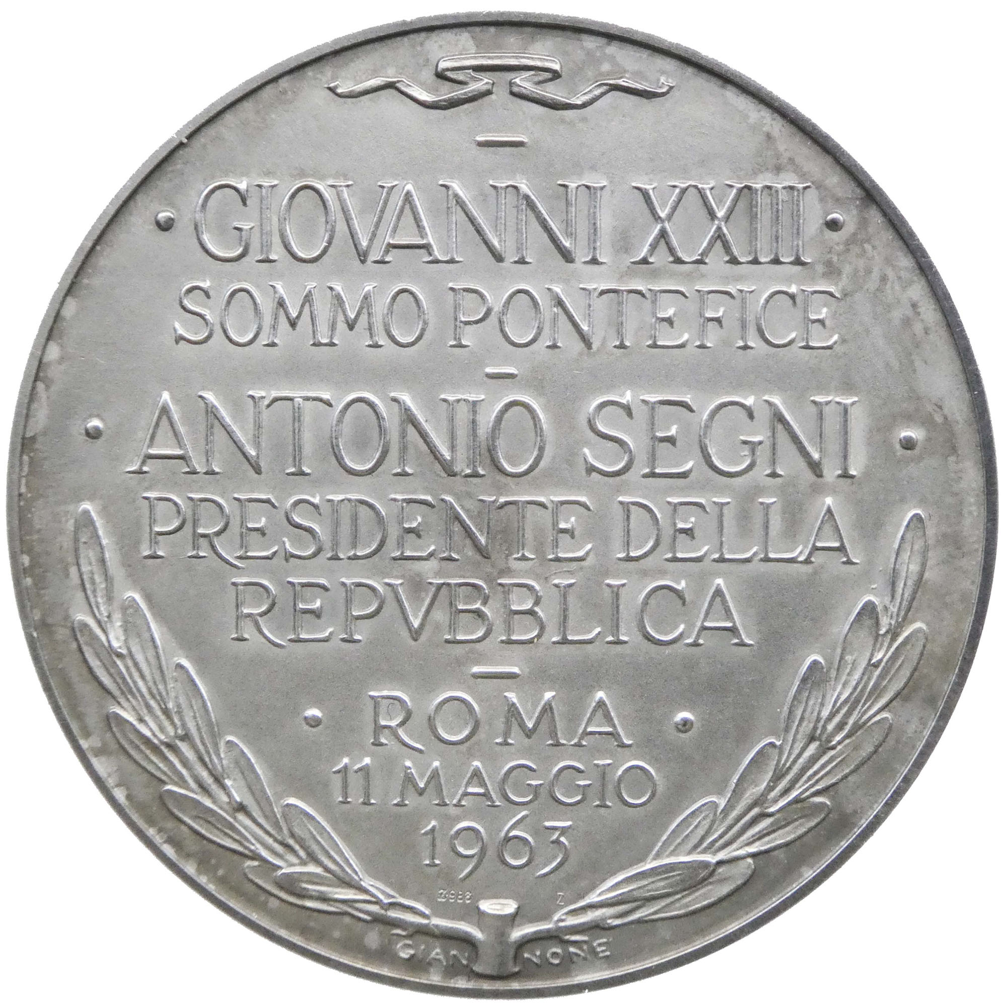 Medaglia straordinaria in argento per la visita, 11 maggio 1963, di Papa Giovanni XXIII al Presidente della Repubblica Antonio Segni.