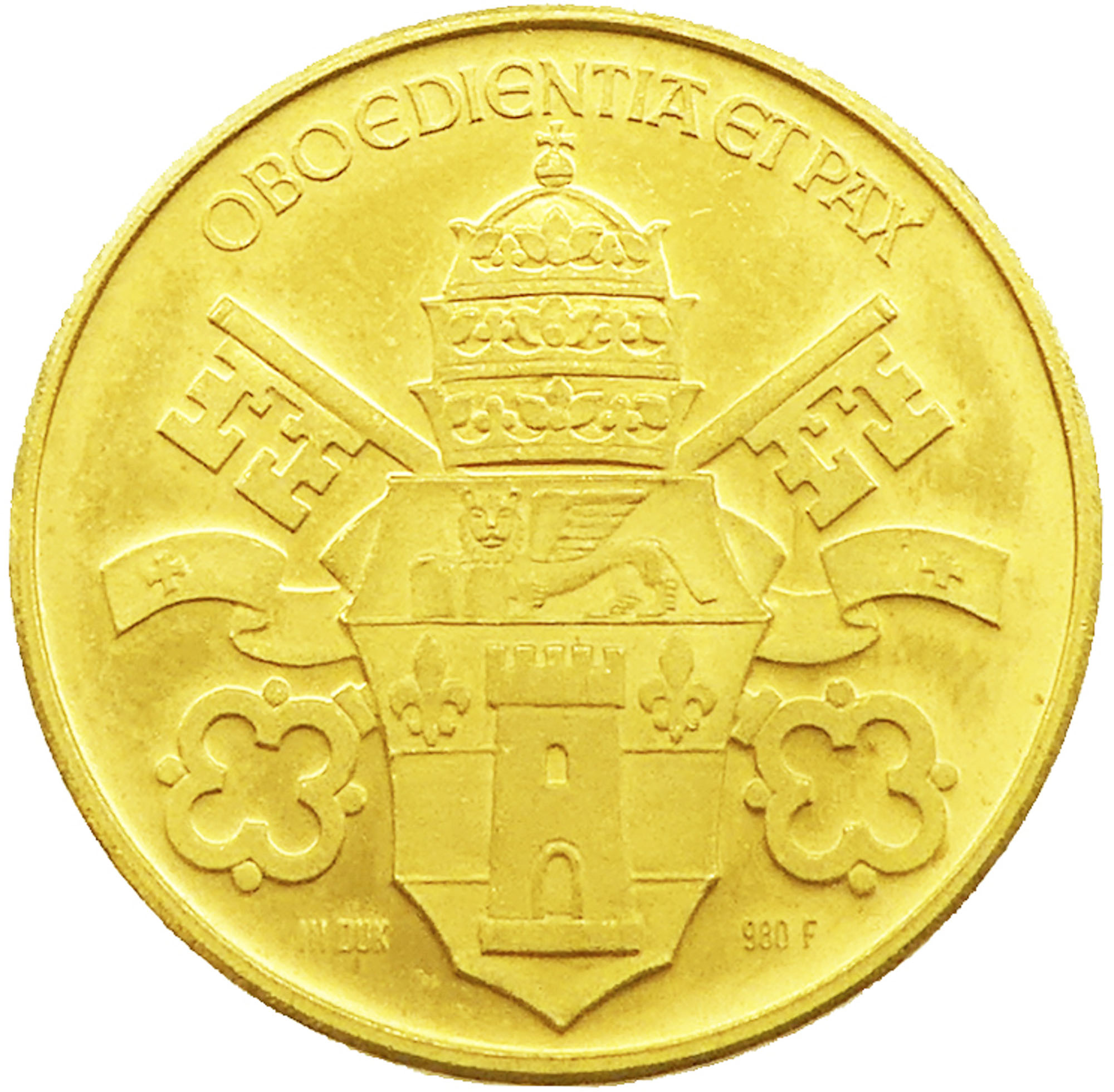 Stato della Città del Vaticano. (Sec XX). Medaglia (III DUK 980 F). D: Testa di papa Giovanni XXIII (1958-1963) volta a sin. R: Stemma papale. Oro. mm 25. g 10,50. Fondi a specchio. (1)