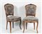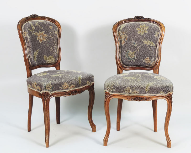 SERIE DI QUATTRO SEDIE IN NOCE metà del XIX secolo schienale a scudo intagliato con motivi floreali, gambe mosse, sedute imbottite e rivestite in broccato di velluto nei toni dell'azzurro carta da zucchero A SET OF FOUR WALNUT CHAIRS, MID 19TH CENTURY