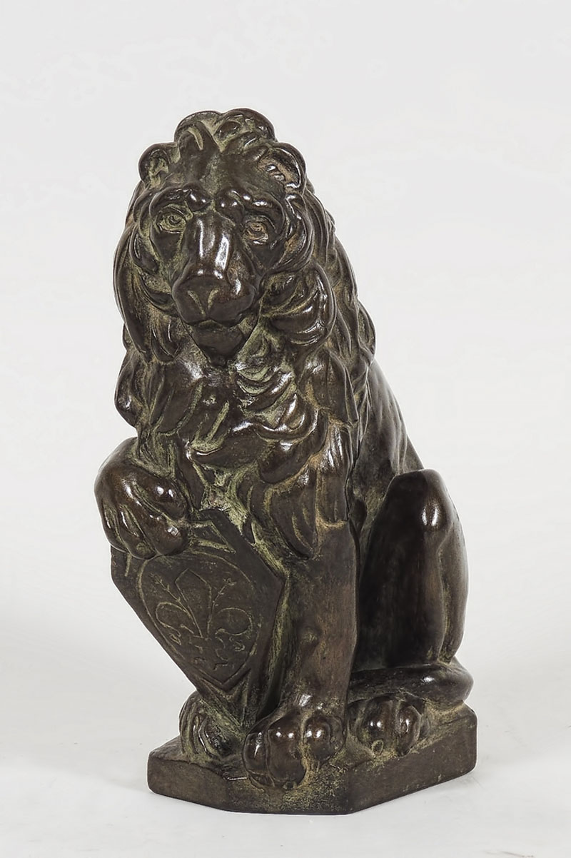 IL MARZOCCO IN TERRACOTTA PATINATA A BRONZO Manifattura di Signa, Anni Trenta h cm 25,5 PATINATED TERRACOTTA FIGURE OF THE MARZOCCO, SIGNA MANUFACTORY, 1930S