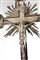 Croce processionale in metallo argentato, XVIII/XIX secolo la figura del Cristo, privo di corona con capelli ricadenti sugli omeri e volto lievemente inclinato verso la spalla sinistra, lo sguardo rivolto verso l'alto; croce con vertici cuspidati, titulus crucis su cartiglio e grande raggiera posta al verso delle assi; nodo caratterizzato da più ordini guillochées cm 76x28 - la figura cm 16x15