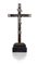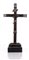 Cristo crocifisso in argento fuso e cesellato, XVIII secolo su croce da tavolo in legno ebanizzato con terminali in argento, inserita in un piedistallo parallelepipedo gradinato. La figura del Salvatore è ritratta secondo l'iconografia del Christus Patiens con aureola e corona di spine, la testa lievemente rivolta verso l'alto orientata verso la spalla destra, le braccia tese, il costato reso in evidenza dal ventre fortemente rientrante, le gambe flesse con i piedi sovrapposti trattenuti da un unico chiodo. Sulla sommità titulus crucis e teschio con tibie incrociate nella parte bassa lungo l'asse verticale cm 12x10 - con la croce cm 47x22,5x7
