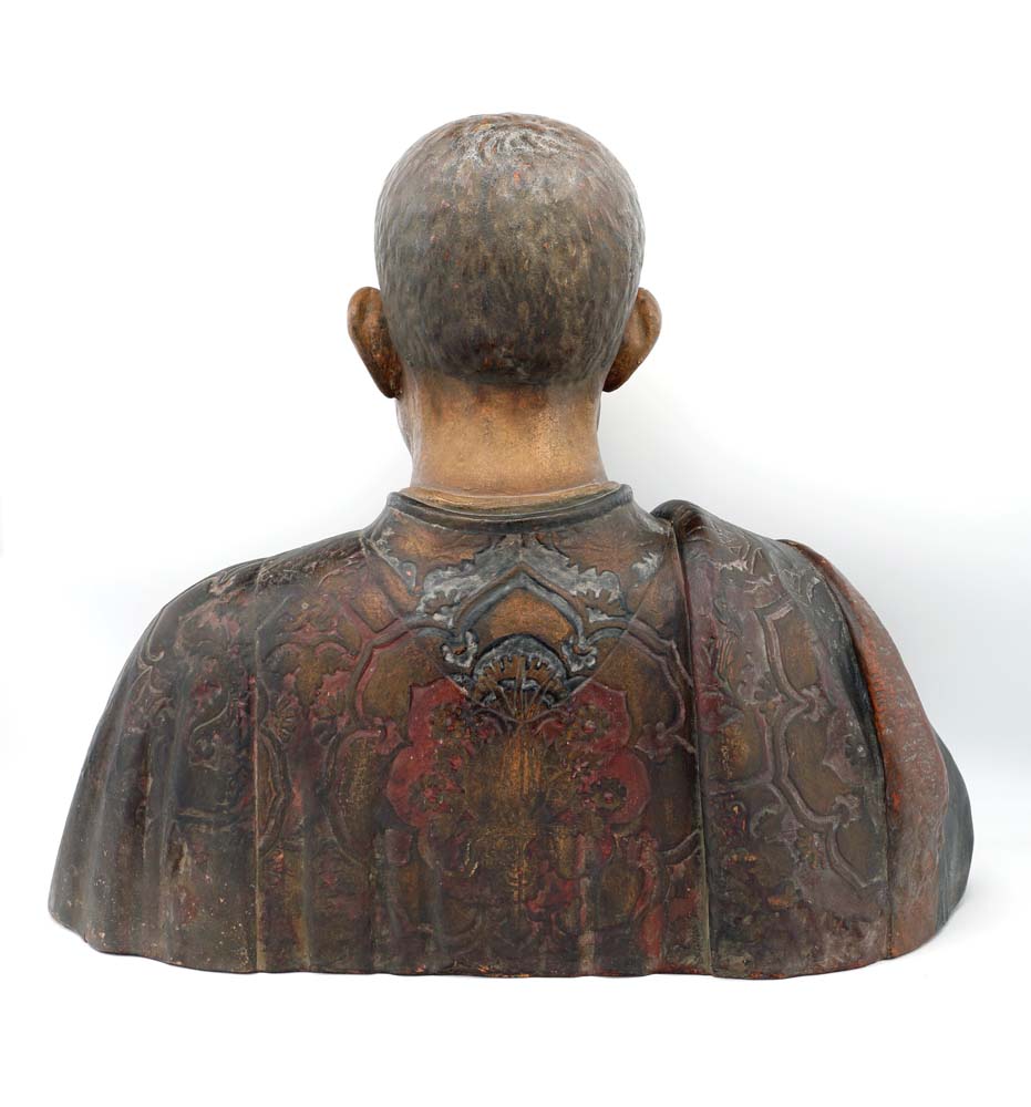 Pietro Mellini (1411 - 1485), facoltoso mercante fiorentino e alleato della famiglia Medici, fu più volte priore della città. Nel 1474 commissionò a Benedetto da Maiano il suo busto ritratto e il pulpito con le storie di San Francesco per la basilica di Santa Croce. Il busto fu acquistato dalle Gallerie fiorentine nel 1825 e, con la riorganizzazione delle collezioni medicee, venne trasferito nel 1865 al Museo Nazionale del Bargello. L'opera, ispirata allo stile di Antonio Rossellino, raffigura un uomo anziano con grande attenzione ai tratti dell’età; l’espressione intensa e concentrata comunica emozioni complesse, mentre il ricco abito in broccatello con un lembo gettato con naturalezza sulla spalla, è reso con un modellato estremamente raffinato, che ne valorizza le pieghe e i motivi decorativi terracotta policroma cm 50x58x28