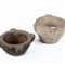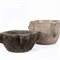 Due mortai diversi rispettivamente in marmo verde e bianco, XVI/XVII secolo entrambi bocciardati e dalla caratteristica forma circolare con quattro lobi; quello bianco caratterizzato da una scanalatura. Rotture e mancanze cm 10x25 e cm 15x27