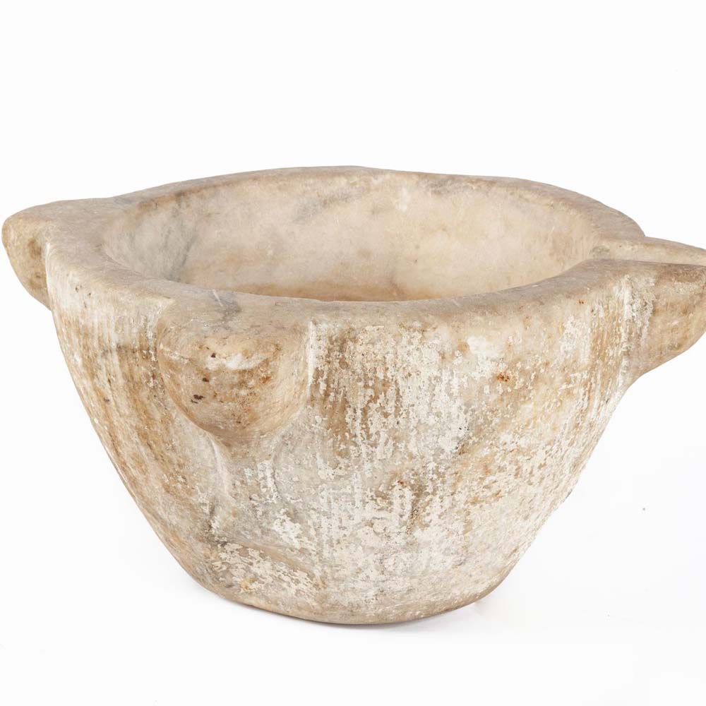 Lotto 376 | Grande mortaio bocciardato in marmo bianco, XVII secolo caratterizzato da...