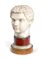 Testa in marmo bianco raffigurante l'imperatore romano Geta base a rocchio di colonna in marmo rosso antico su plinto modanato bianco; supporto a disco in marmo romano antico altezza complessiva cm 48