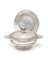 Zuppiera con coperchio e vassoio in argento 800/000 corpo circolare, manici a...