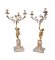 Coppia di candelabri a tre fiamme in argento e argento dorato con putti,...