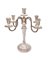 Candelabro in argento 800/000 a cinque luci fusto rastremato da cui si dipartono quattro bracci incurvati con portacandela a vaso; piede circolare cm 33x24,5x18,5 - gr. 930