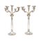 Coppia di candelabri in argento a doppio uso, Vienna 1836 fusto liscio su piede circolare decorato da stemmi araldici incisi; sulla sommità si innesta un palco a cinque bracci a forma di cornucopia con vertice inferiore rifinito da una sfera altezza uso singolo cm 32 - cm 48,5x31 (appesantiti)