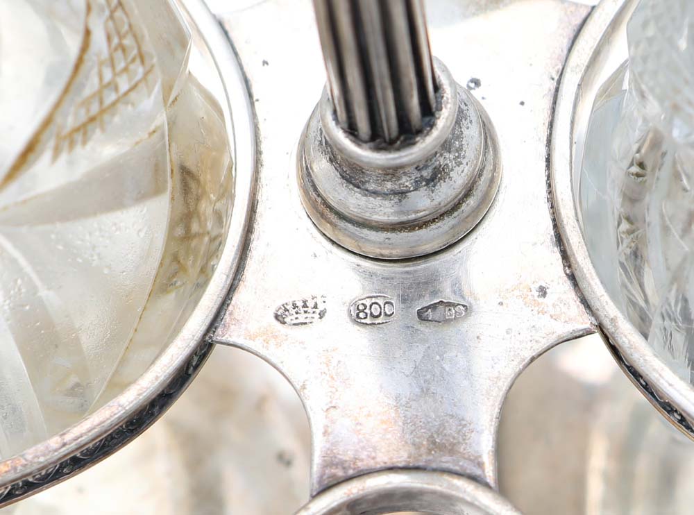 Acetoliera in argento 800/000 vassoio ovale con piedi a sfera, presa centrale...