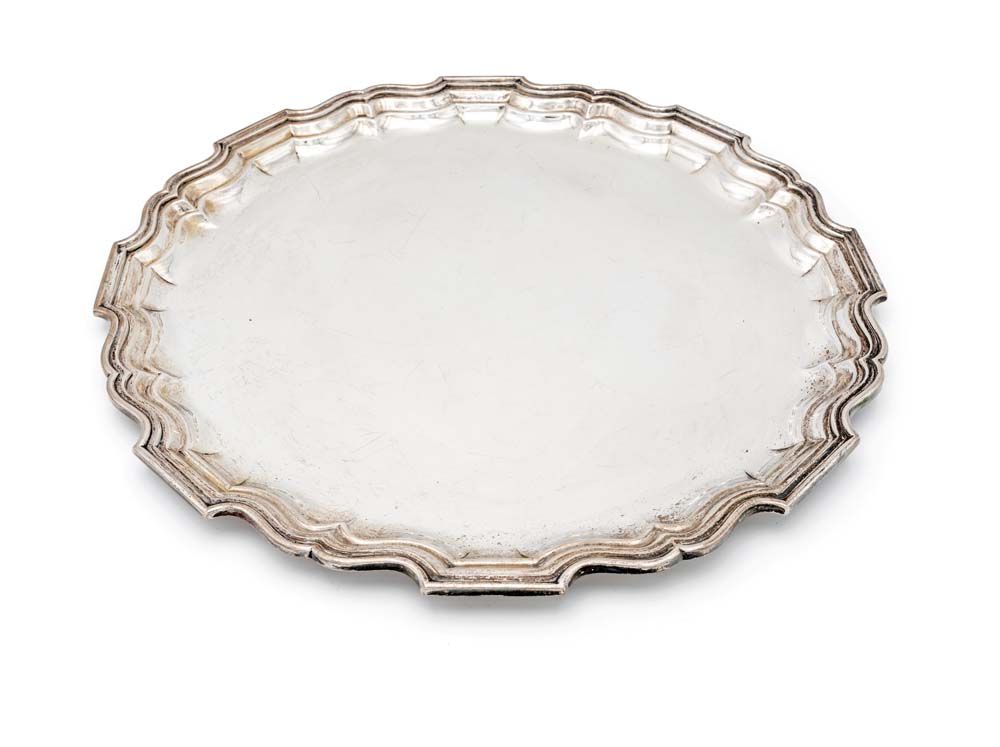 Vassoio circolare in argento 800/000 profilo mistilineo diametro cm 43 - gr. 1585