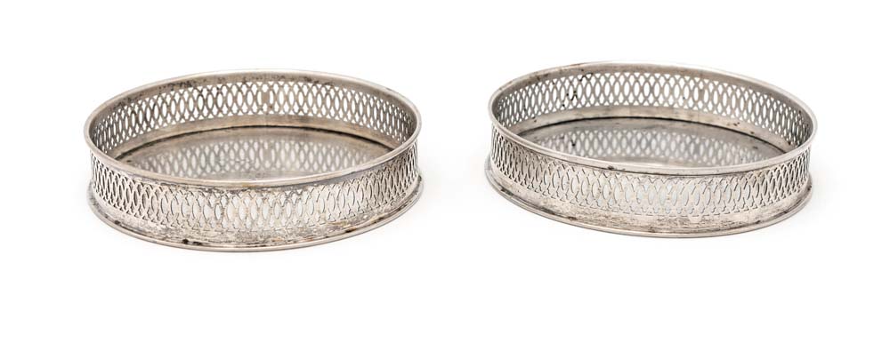 Coppia di sottobottiglia in argento 800/000 ringhierina traforata cm 2,5x12 -...