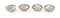 Quattro bowls di diversa forma in argento 925/000 ognuna caratterizzata da una sagoma individuale; entro scatola ad hoc in cartone blu della "Bottega dell'Argento" con rivestimento interno in raso cm 2,5x7,5 ca. ognuna - peso complessivo gr. 90 - la scatola cm 4,5x26x26