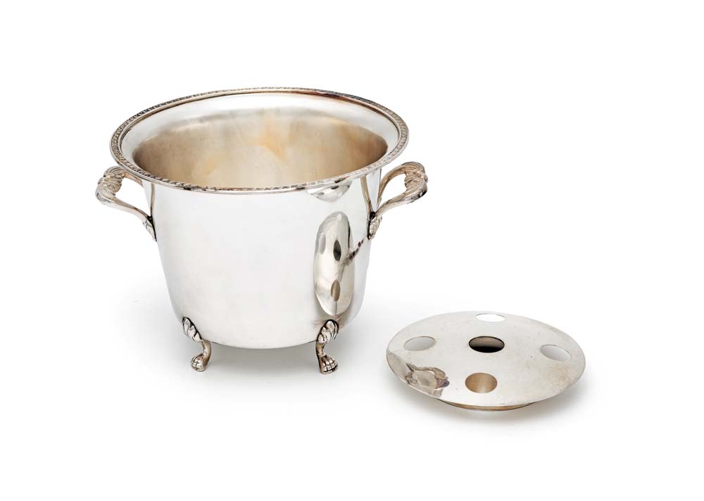 Secchiello portaghiaccio in argento orlo superiore con profilo a palmette,...