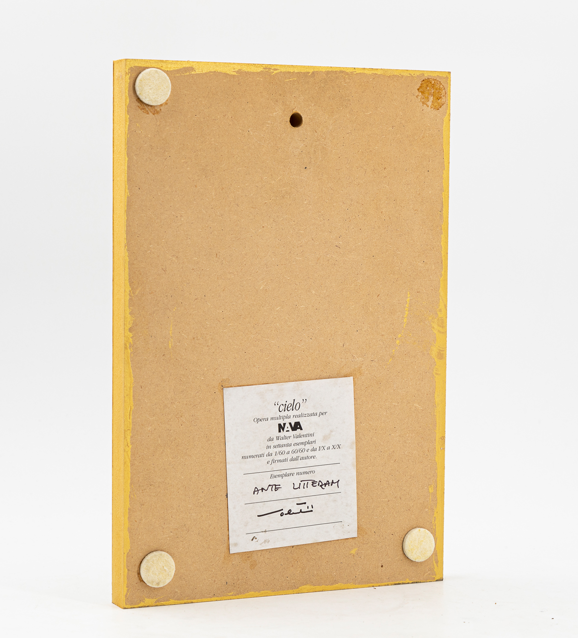 Etichetta recante firma, numerazione (Esemplare Ante Litteram) e caratteristiche tecniche dell'edizione al retro