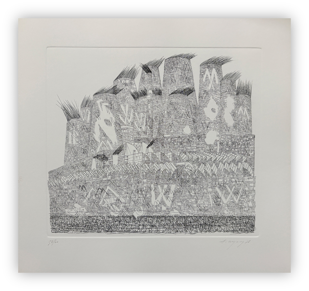 Splendida cartella contenente 26 acqueforti di Alberto Longoni, ciascuna recante firma, datazione e numerazione (Esemplari 58/60) a matita al fronte
