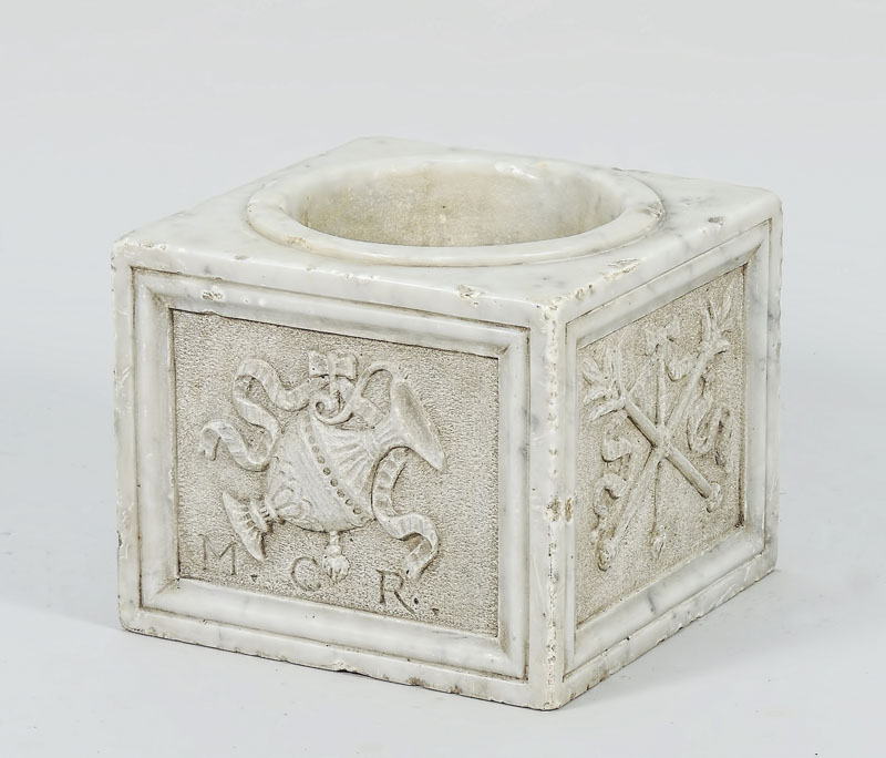 PORTAVASI QUADRATO IN MARMO lati scolpiti con elementi di gusto classico h cm...