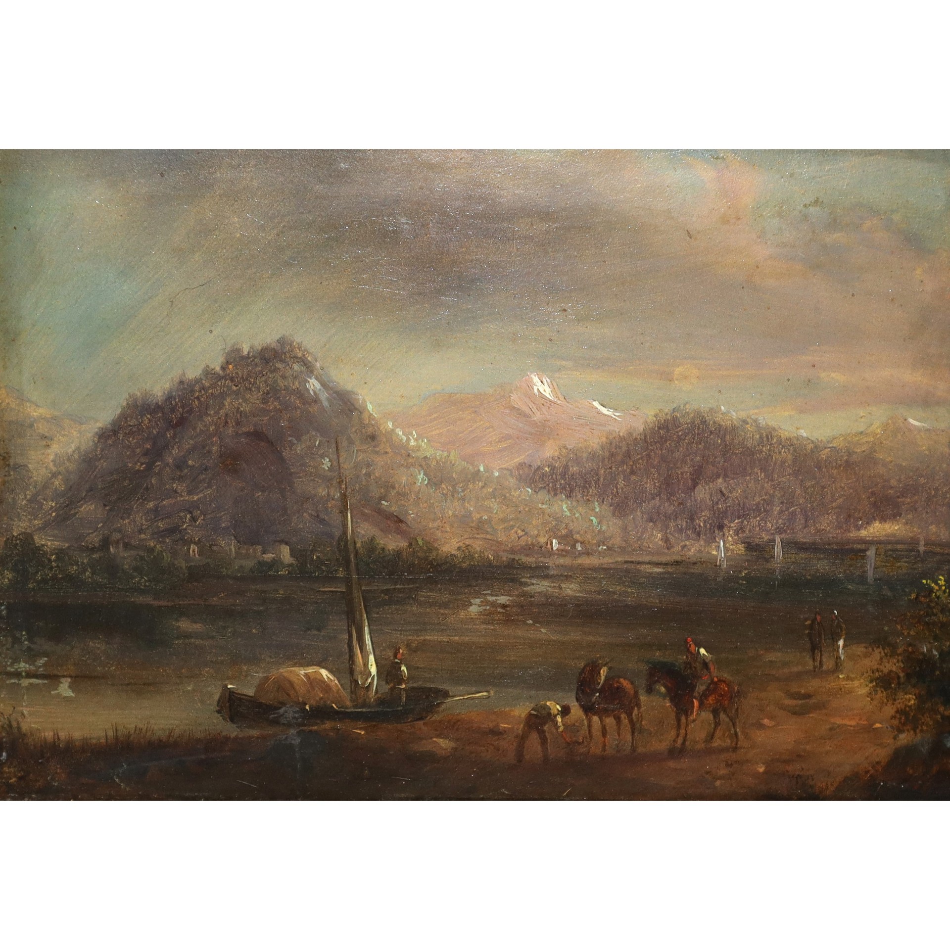 Antonie VAN SMINCK PITLOO (1791 - 1837) - Paesaggio con barche e personaggi con cavalli h cm 19X28 in cornice h cm 30X39 olio su tela