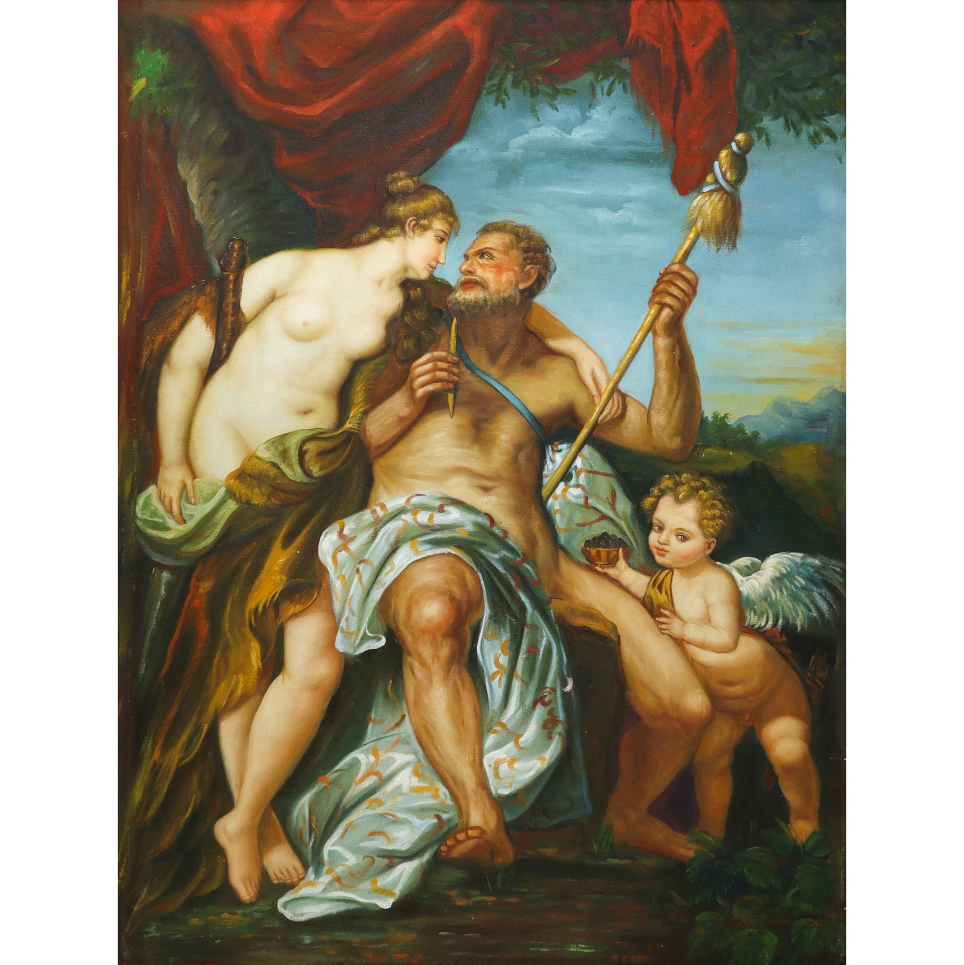 Albert Heller (inizi XX secolo) - ERCOLE E ONFALE, fine 19° secolo h cm 100,5X75 in cornice h cm 130X105 Olio su tavola Questo lotto è soggetto a diritto di seguito