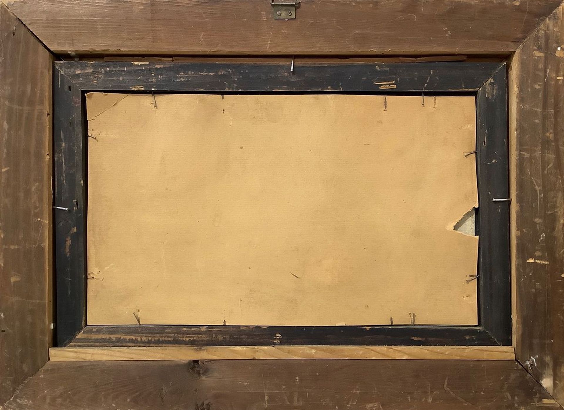 Giovanni Capranesi (Roma 1852 - Roma 1921) - Donna sdraiata su prato, 19° secolo 18X30 cm, in cornice 33x45 Dipinto olio su cartoncino Firmato in basso a destra G. Capranesi.