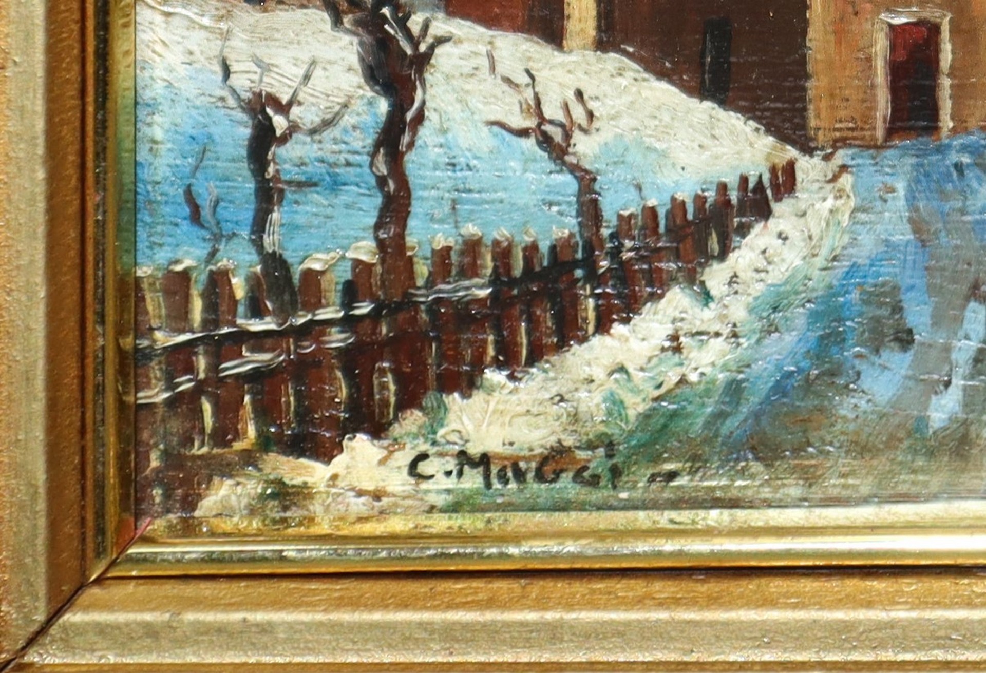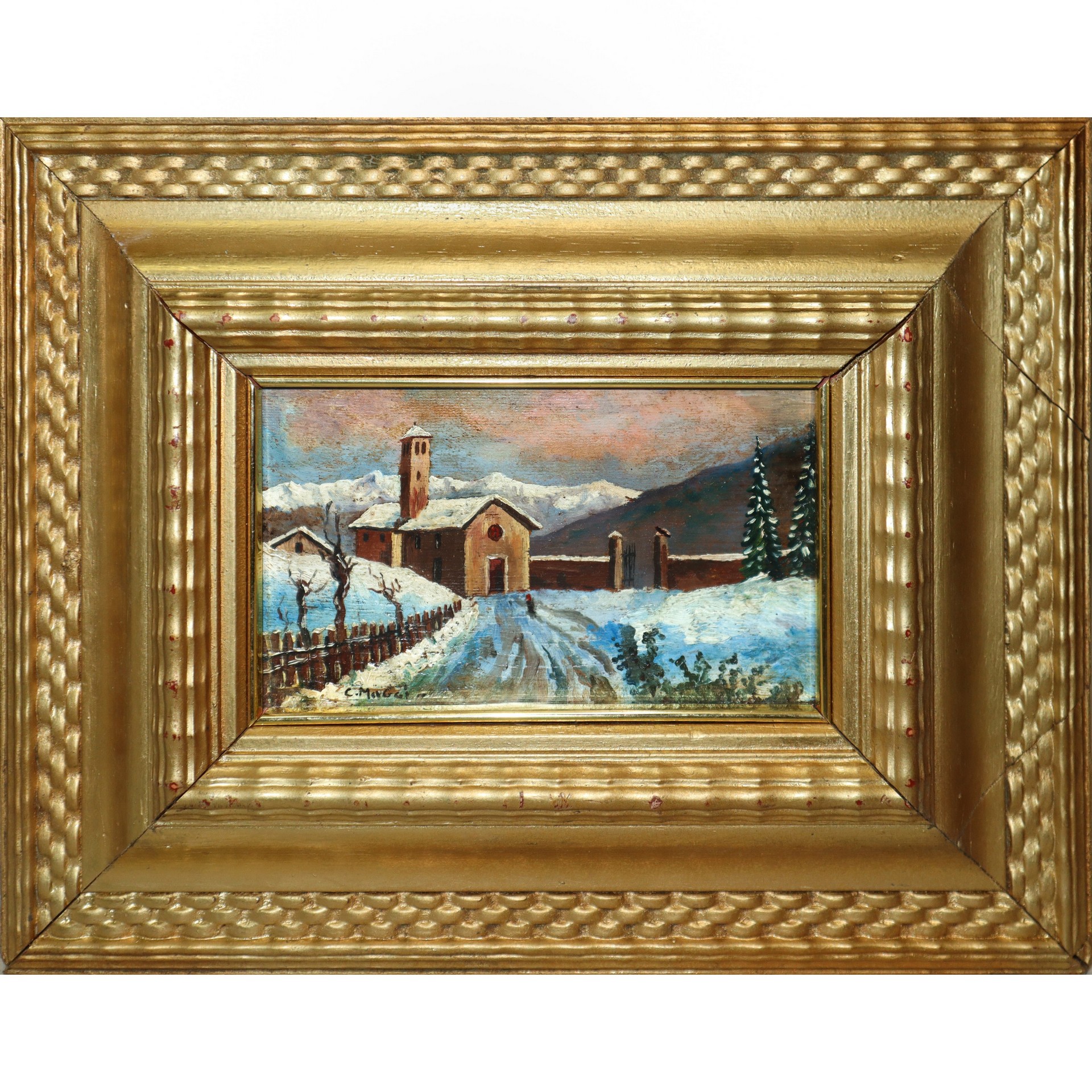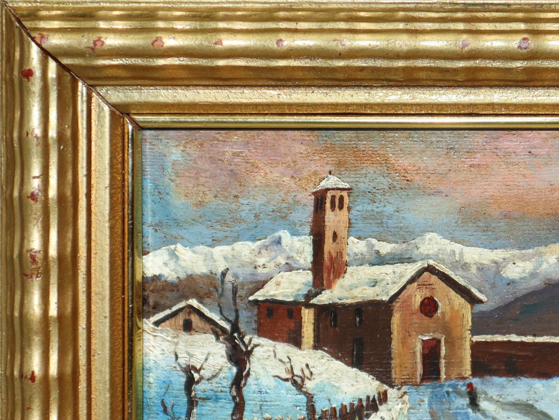 Cesare Maggi (Roma 1881 - Torino 1961) - Paesaggio innevato cm 11x 19 in cornice cm 28x36 Olio su tavola