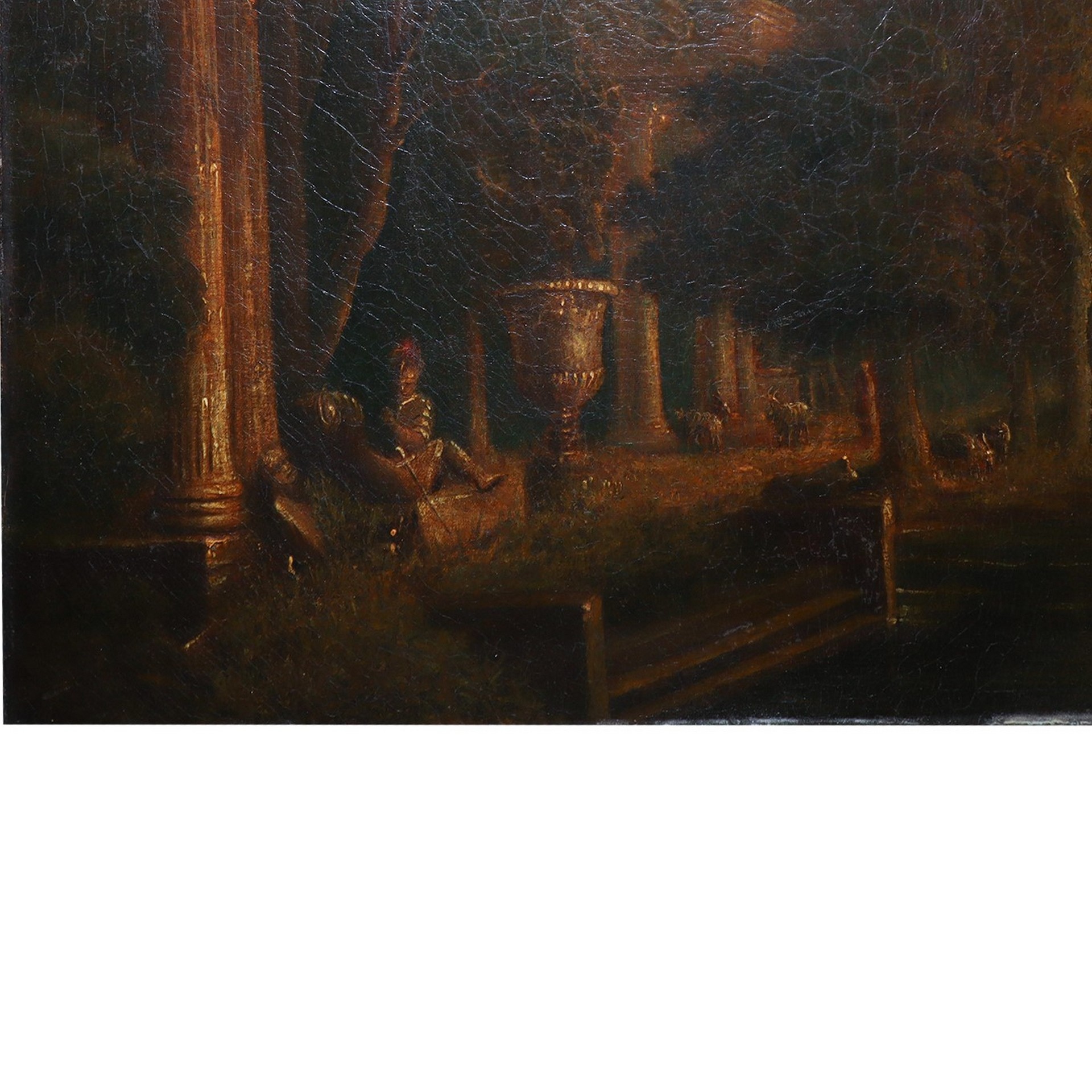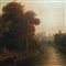 Paesaggio fluviale, 19° secolo h cm 50X77 in cornice h cm 76X100 olio su tela