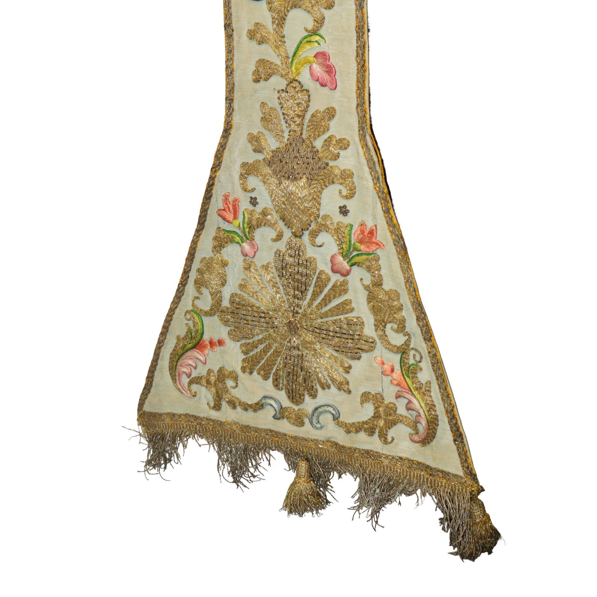 Lotto 109 | Stola in stoffa con ricamo in seta e oro, fine 18° secolo