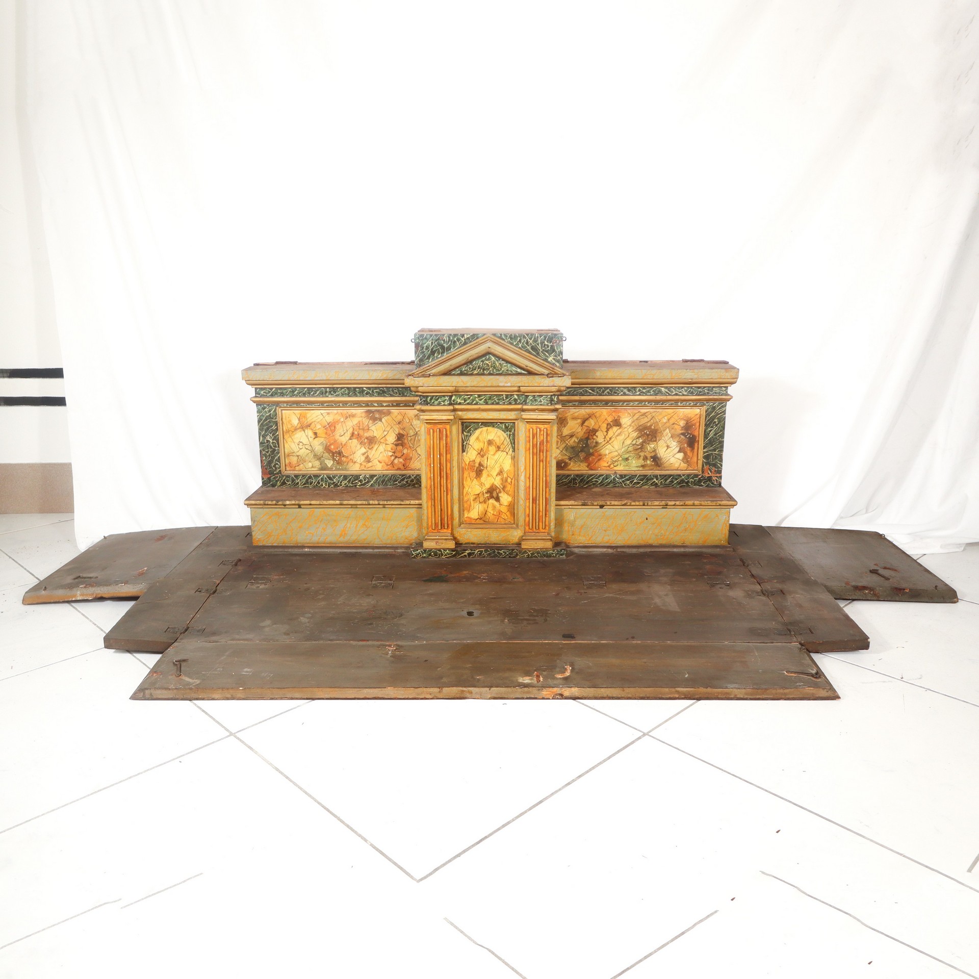 Tabernacolo da viaggio in legno laccato policromo e marmorizzato, Sicily 18° secolo h cm 56X120X43