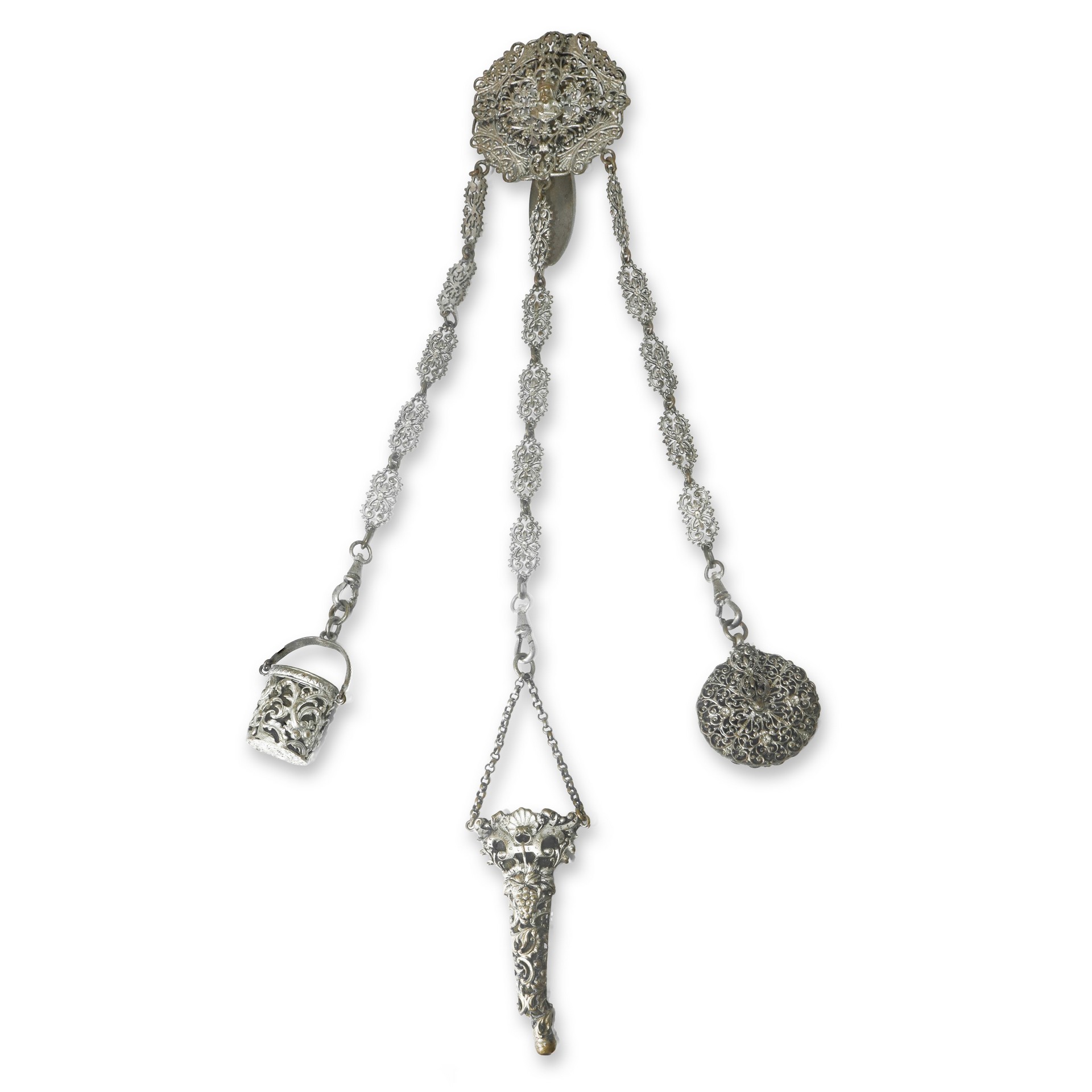 Chatelaine in argento lavorato a filigrana , 19° secolo