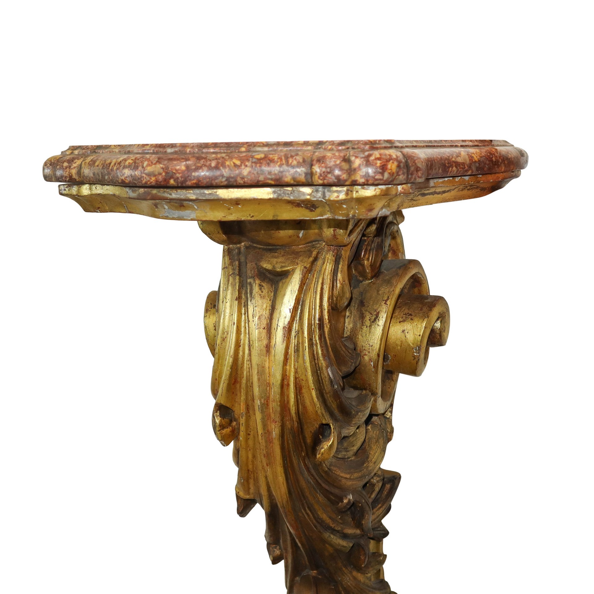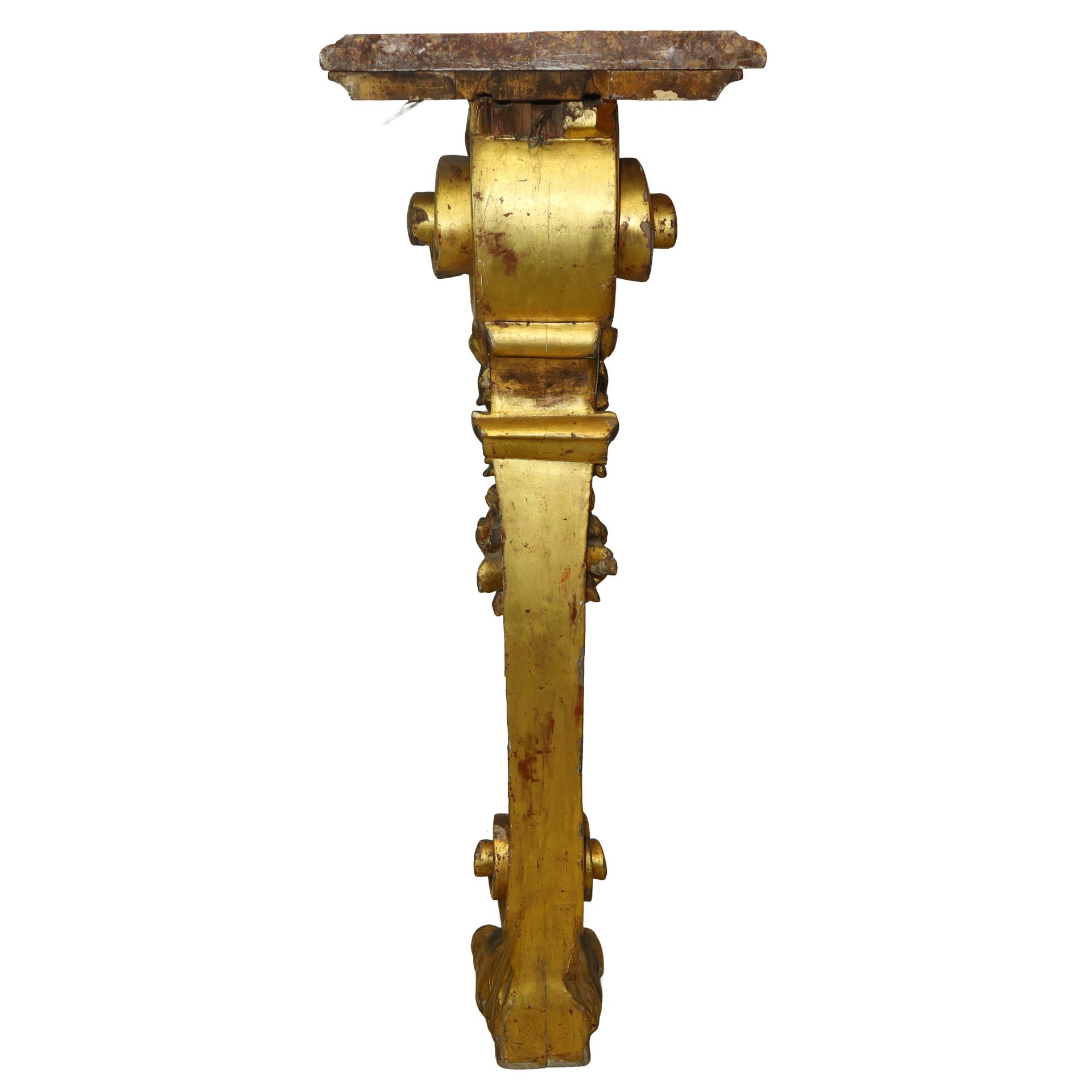 Gueridon da muro in legno dorato marmo al piano, 18° secolo h cm 102