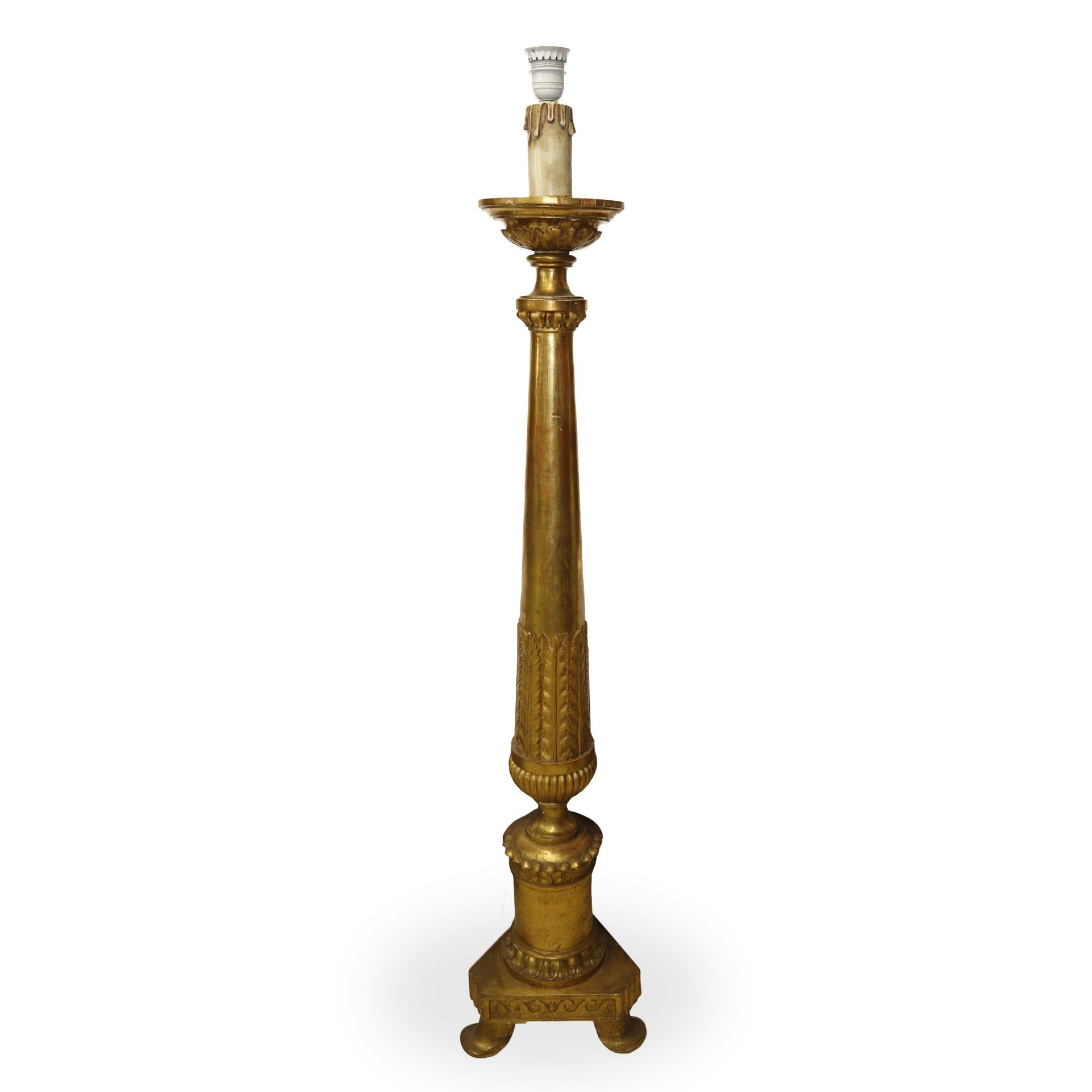 Candeliere da terra in legno dorato, fine 19° secolo h cm 135,5 base cm 28,5