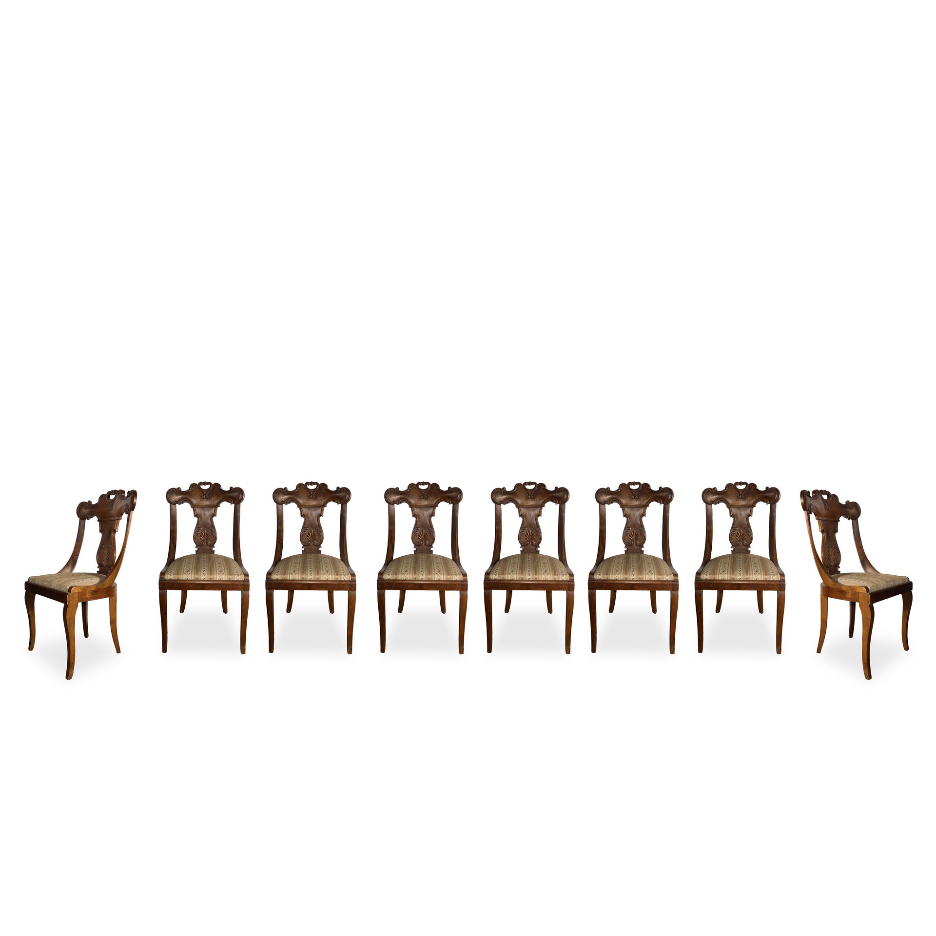 N°8 Sedie con spalliera a basso rilievo, piedi a sciabola, first half of the 20° secolo