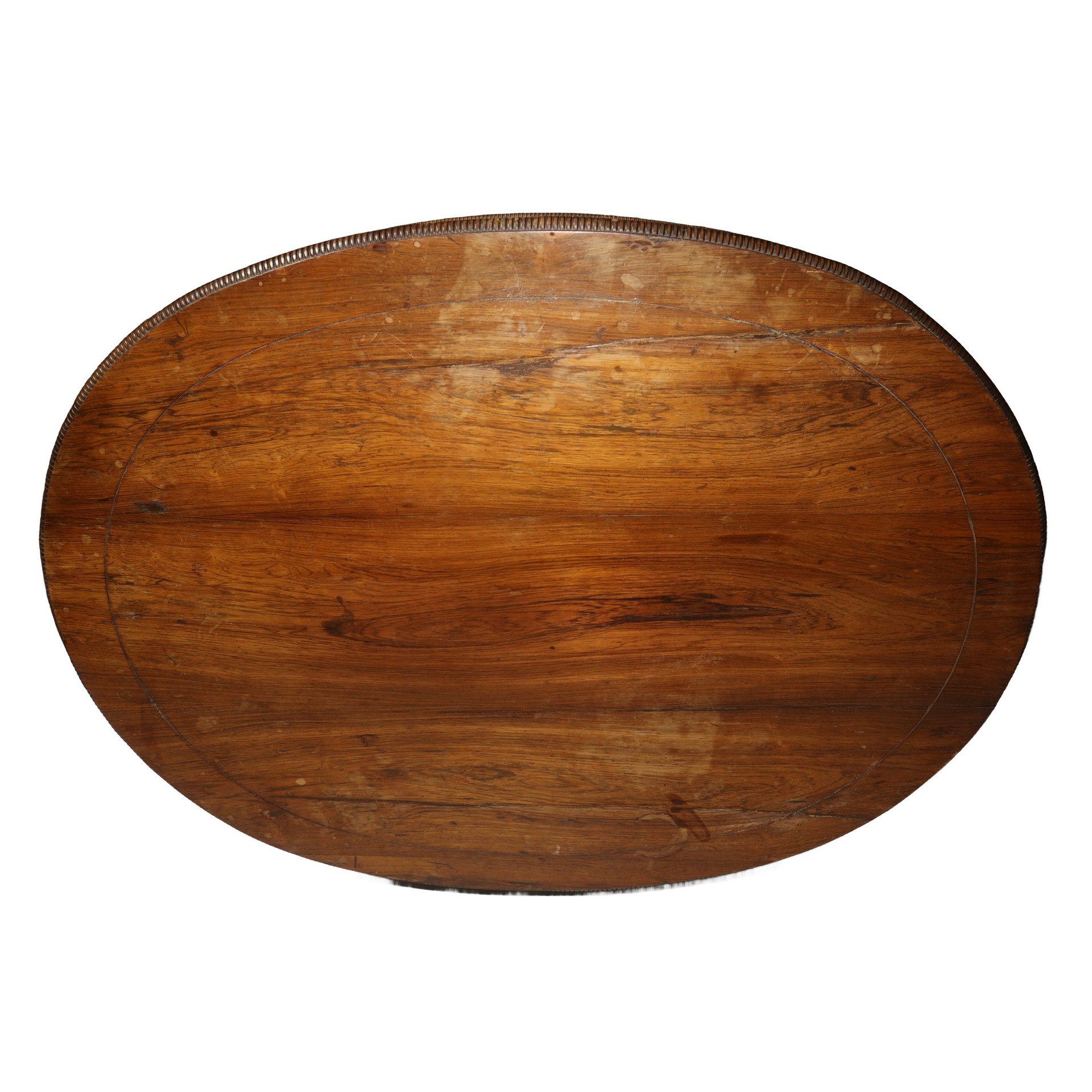 Tavolo rotondo in legno di rovere con piano dentellato al bordo e piede a 4 razze, 19° secolo