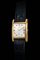 Cassa in oro di forma con fondello a scatto. Quadrante argento con indici geometrici applicati ed indicazione dei secondi continui al 6.