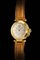 Cassa in oro giallo con lunetta liscia, fondello avvitato e caratteristica protezione della corona di carica con zaffiro cabochon. Quadrante a settori color panna con numeri arabi serigrafati ai quarti e datario al 5. Cinturino in pelle con chiusura clasp in oro originale Cartier.