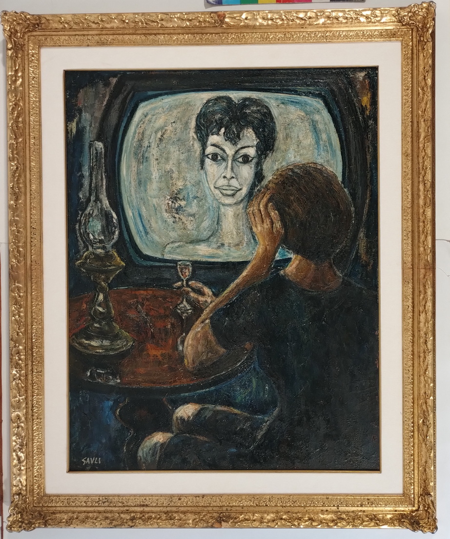 GAULI PIERO Milano (Milano ) 1916 Enza Sanpò davanti la televisione 1960 Olio...