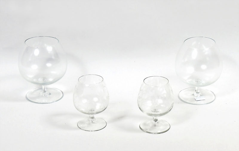 DUE SERIE DI SEI BICCHIERI DA BRANDY delle quali una decorata con scene galanti (12) TWO SETS OF SIX SNIFTERS