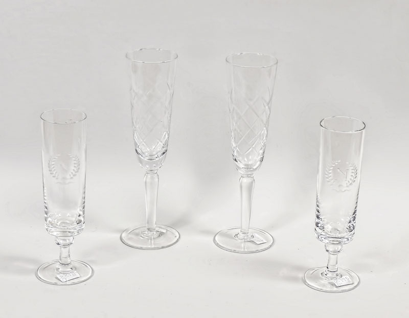LOTTO una serie di sei flutes in cristallo molato ed un'altra decorata con N...