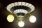 COPPIA LAMPADARI CON TRE CORPI LUMINOSI A SFERA E CORPO IN VETRO DI MURANO CON FINITURA AL PIOMBO, SOSTEGNI IN METALLO OTTONATO, ANNI 60