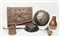 LOTTO DI OGGETTI IN RAME tra cui alcuni tegami d'epoca, alcuni stampi per...