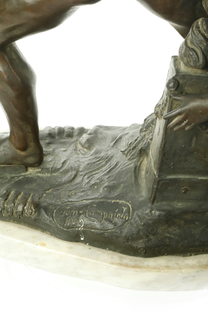 Scultura bronzea raffigurante Ercole e Lica su base di marmo altezza cm 56 senza base; altezza con base cm 59
