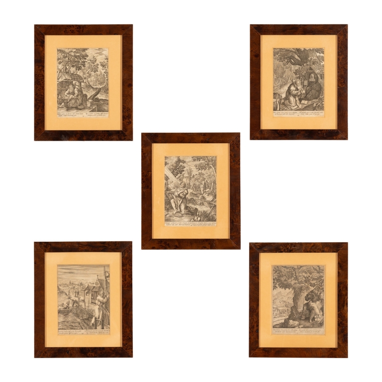 Lotto 178 | Lotto di cinque tavole calcografiche di Francesco Valesio cm 19,5x14,5; con cornice cm 32,5x28