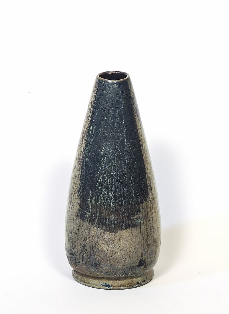 PICCOLO VASO IN TERRACOTTA SMALTATA A LUSTRO Galileo Chini, 1919-1920 dipinto nei toni del blu e del verde/grigio, lieve difetto h cm 17 Reca marchio grafico ed etichetta "Grata entro cerchio" Chini & Co., Mugello, Italia SMALL GLAZED TERRACOTTA VASE, GALILEO CHINI, 1919