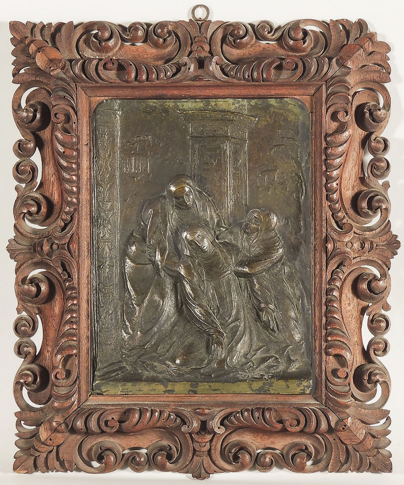 LE PIE DONNE XIX secolo bassorilievo in bronzo in cornice cm 20x15 PIOUS WOMEN, 19TH CENTURY, BRONZE LOWRELIEF